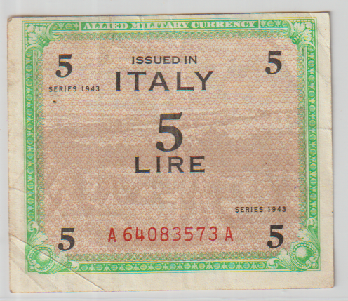 SCARCE USA WWII MILITARY NOTE (USED ON USA BASES IN ITALY)